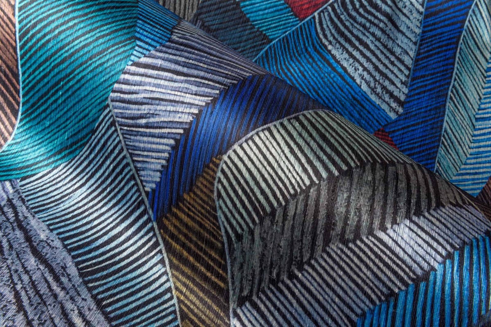 Textielmuurbekleding op vlies. Les Tricots haalt haar inspiratie uit de haute couture modewereld met een duidelijke knipoog naar rijkelijke stoffen en specifieke textieltechnieken. Ze creëert de illusie van echt textiel dankzij de combinatie van unieke druktechnieken en het gebruik van fluweelzachte spinsels.