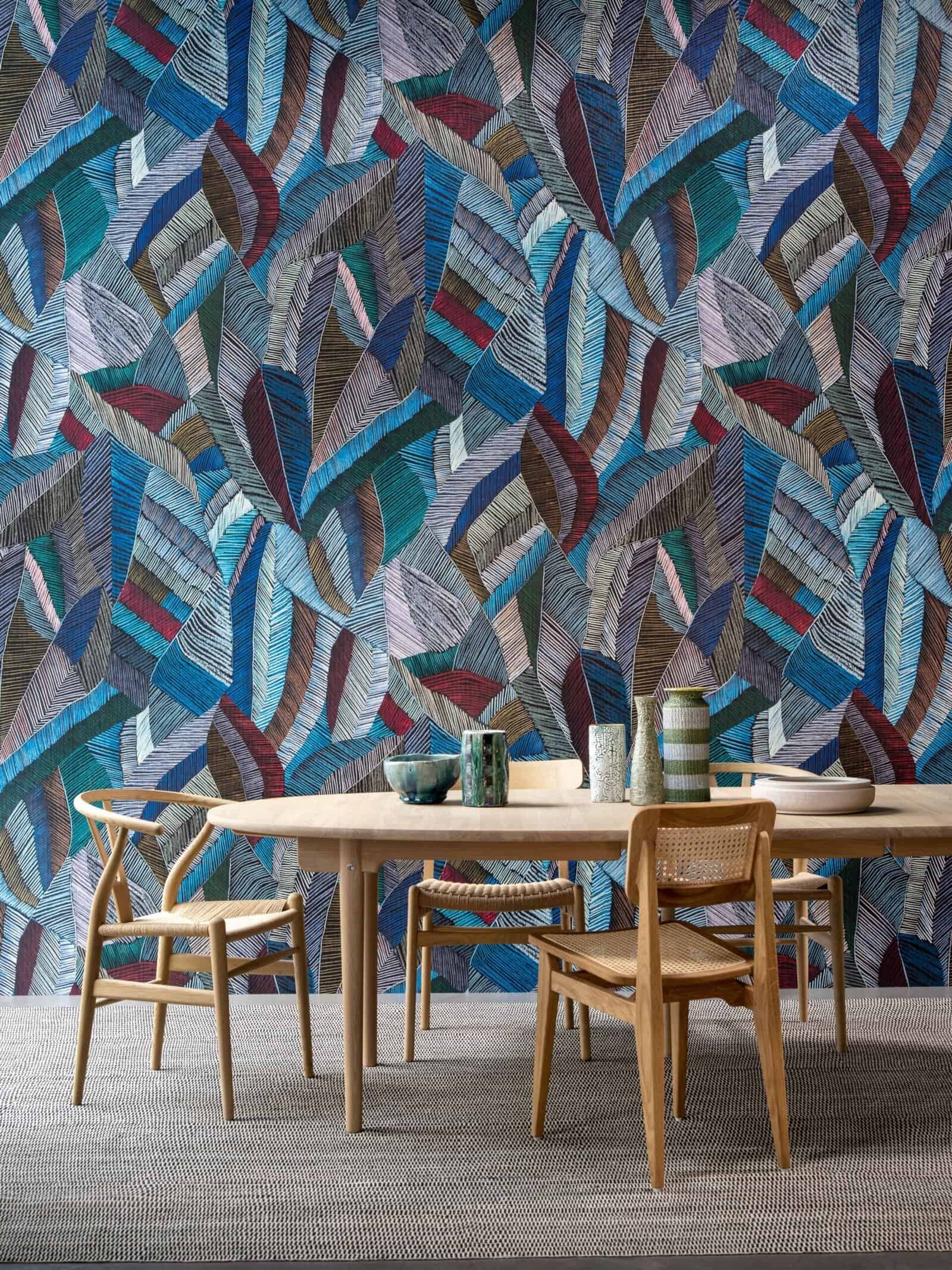De meerderheid van de dessins zijn ingetogen en erg breed toepasbaar om naast kleur, structuur aan de muur toe te voegen. De tekening met een look van chintz is een buitenbeentje en valt op door haar glans en de speelse krijtlijnen in een explosief kleurenpallet.