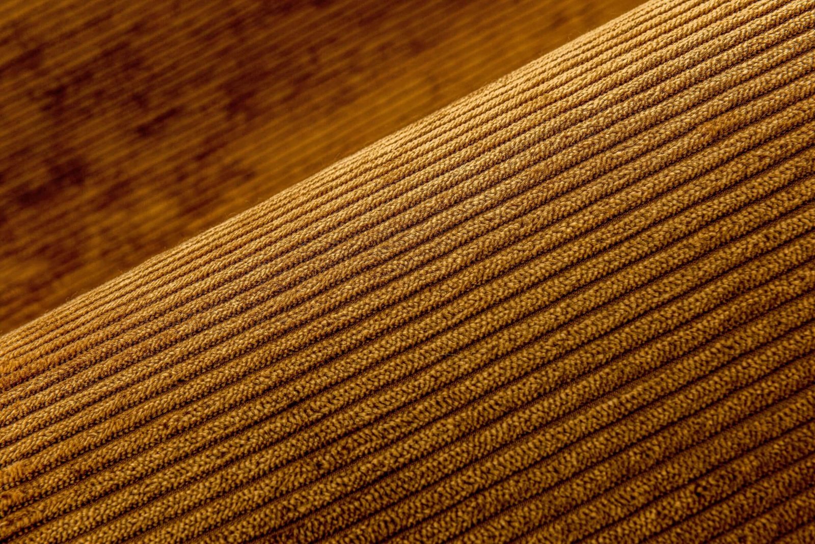 De brede geribbelde structuur van ribfluweel is sensueel en tactiel. Bovendien geeft de subtiele glans, verwerkt in het velours, een elegant en rijk gevoel. De onregelmatige schakeringen zorgen voor een willekeurig patroon.