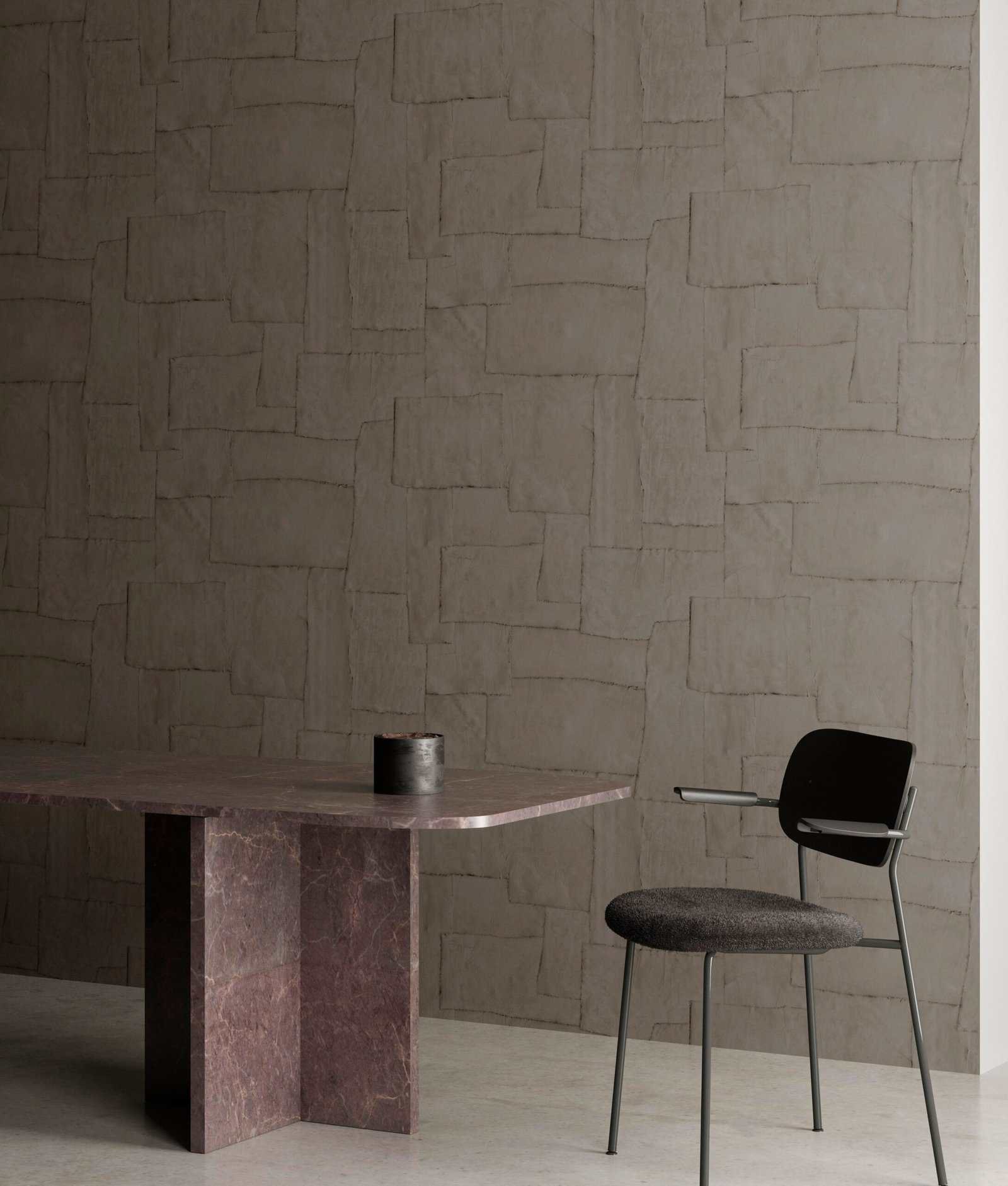 Sculptura haalt haar inspiratie uit ambachtelijk pleisterwerk. Stroken gips werden met de hand in een patroon gelegd om te vertalen naar een verrassende vinylcollectie. De typische gipsstructuur van gaas, scheurtjes en oneffenheden zijn duidelijk zichtbaar. Deze intrigerende muurbekleding met verrassende geometrische patronen geeft op een subtiele manier kleur, reliëf en structuur aan de muur. Dankzij het schaduwspel van licht en donker komen de effen muren tot leven. Kortom, Sculptura is een decoratieve meerwaarde in je interieur zonder alle aandacht op te eisen.