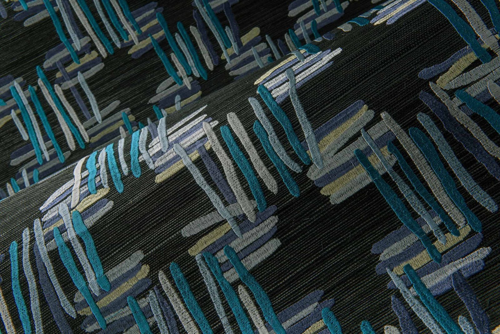 Tatami betekent geplooid en opgestapeld in het Japans, hierbij verwijzend naar de manier waarop traditionele Japanse vloermatten worden vervaardigd. De onderlaag van dit dessin is een knipoog naar deze authentieke techniek. Het glanzende borduurwerk in een geometrische vorm komt hierop prachtig tot haar recht.