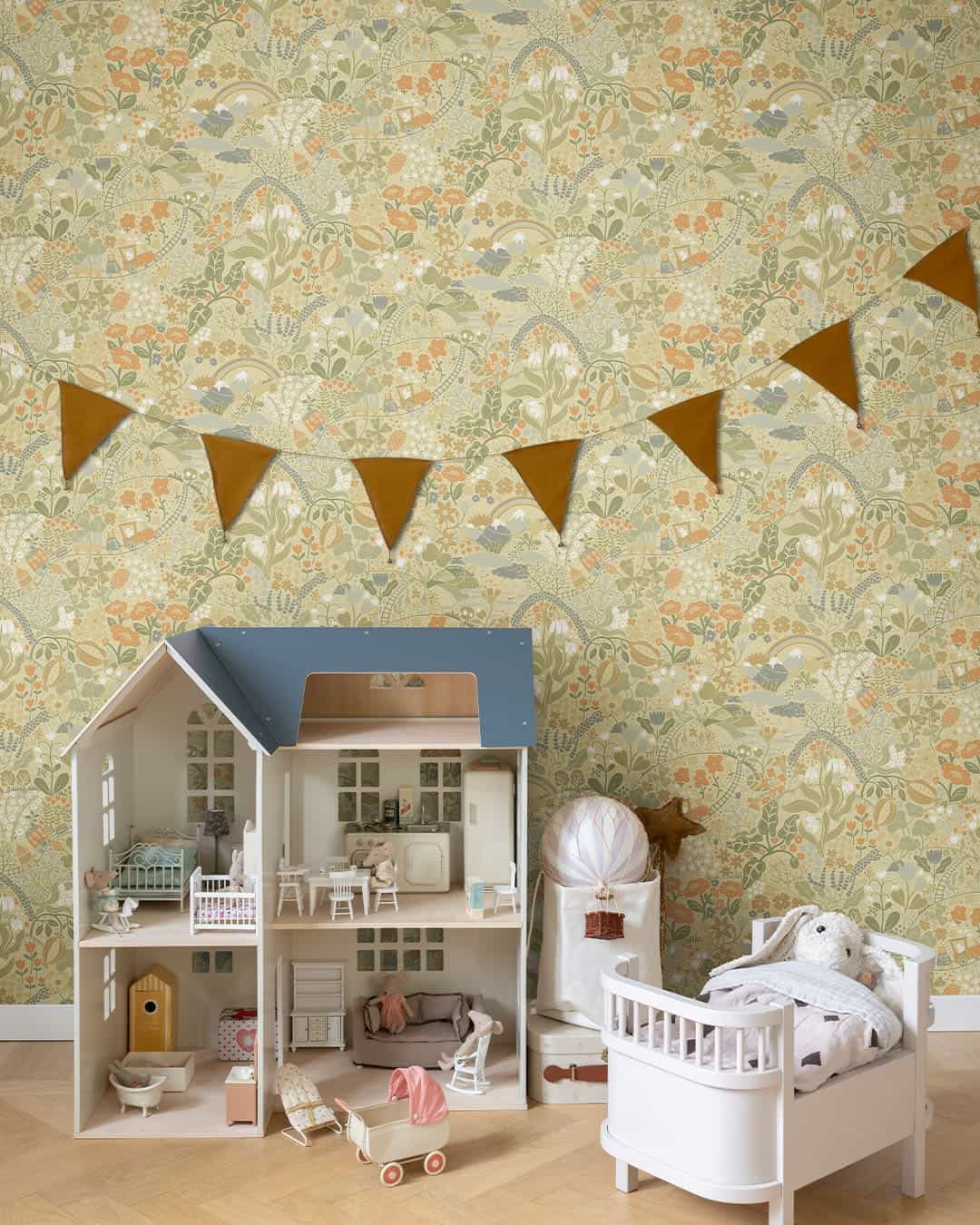 Dutch First Class Behang Resan is een dromerige ontdekkingsreis voor jonge avonturiers. Een verwonderlijke behangcollectie voor in de kinderkamer met ruimte-, bloemen-, voertuigen- en magische thema’s in zachte kleuren.