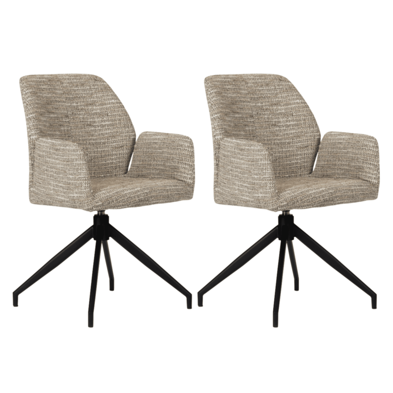 Wat deze stoel bijzonder maakt, is het 360 graden rotatiesysteem, waarmee je soepel in elke richting kunt draaien. Eetkamerstoel biedt gemak zonder dat je de stoel hoeft te verplaatsen. Deze flexibiliteit maakt hem zowel geschikt als eetkamerstoel of als stijlvolle bureaustoel.