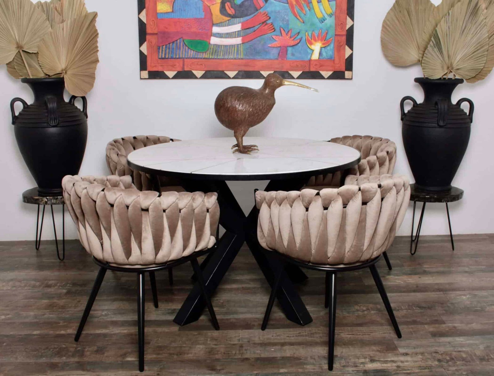 De Eetkamerstoel Wave Chair Zwart van Pole to Pole is vernoemd naar de prachtig geweven rugleuning. Deze eetkamerstoel is een moderne en luxe eyecatcher met een uniek design wat een gespreksonderwerp zal zijn met jouw tafelgasten! Het schuimkussen van 5 cm en de comfortabele rugleuning creëren de perfecte zitpositie voor lange avonden aan tafel.