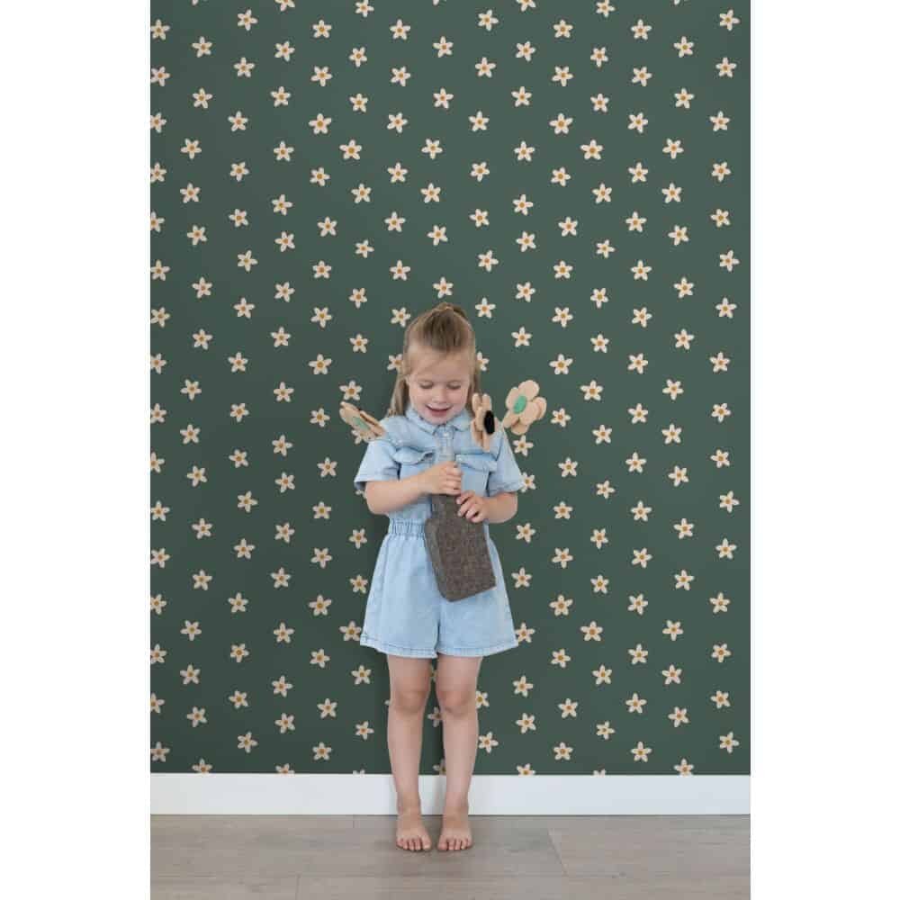 Esta Home Behang – Madeliefjes – Donker Groen – 131116