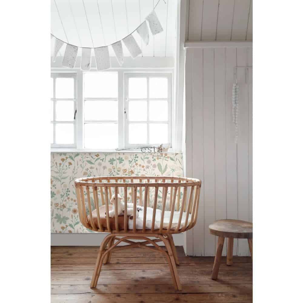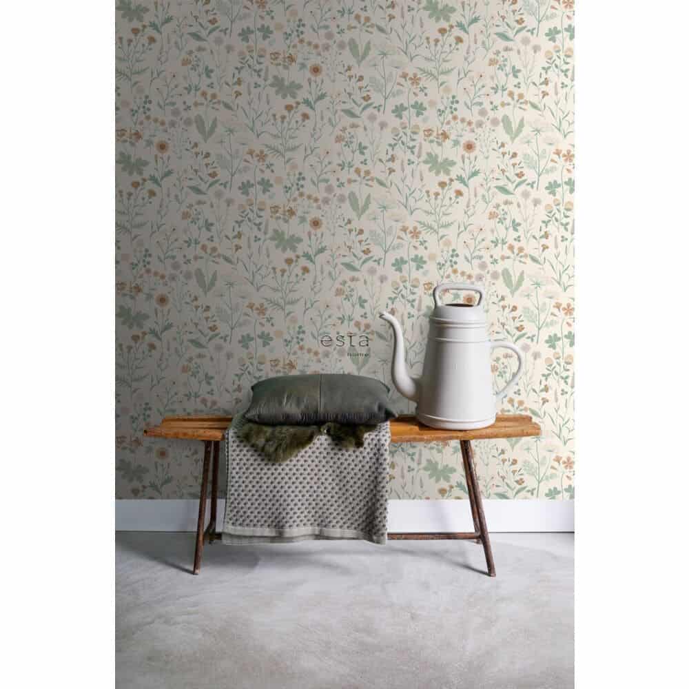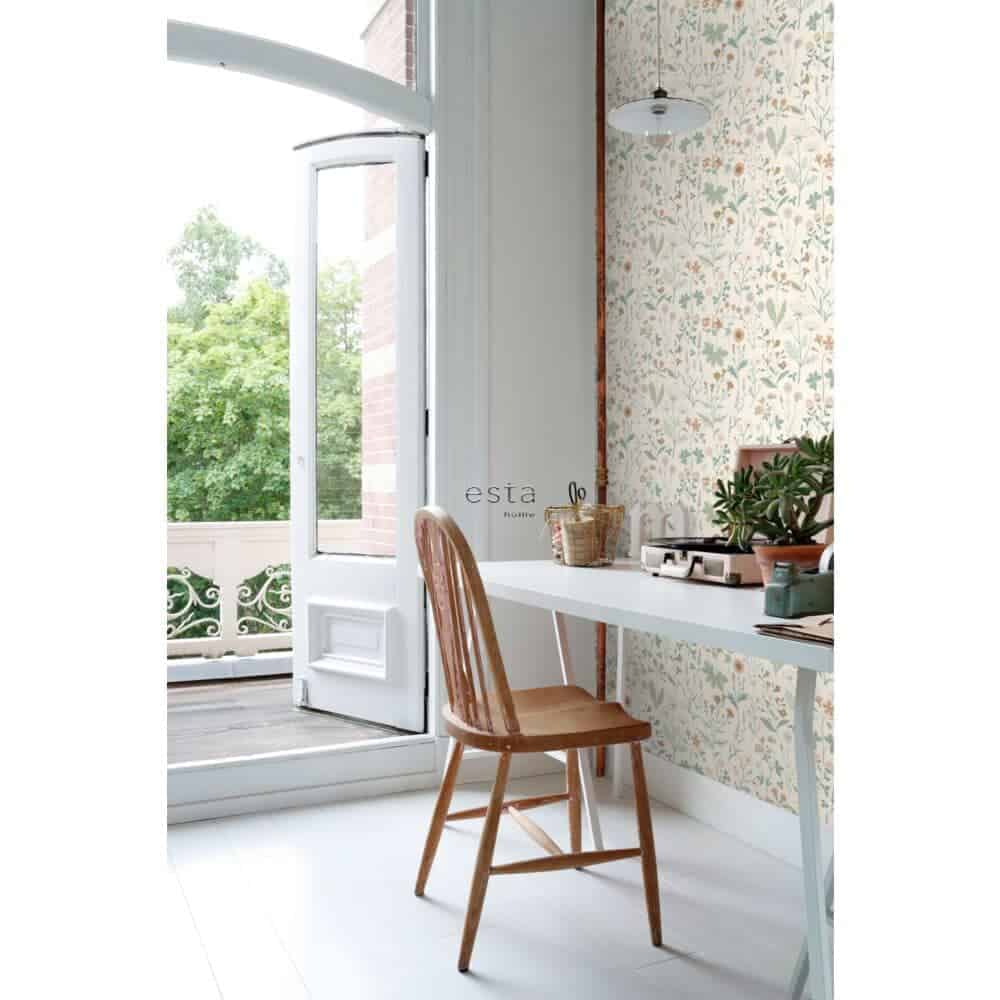 Met de Veldbloemen print van Esta Home Behang haal je de zachtheid van een bloeiend veld naar binnen. Fijne bloemen en subtiele takjes vormen samen een tijdloos dessin dat rust en sfeer brengt in elke ruimte. Een print die natuurlijk aanvoelt en tegelijk iets poëtisch heeft, als een stille ode aan de eenvoud van de natuur.