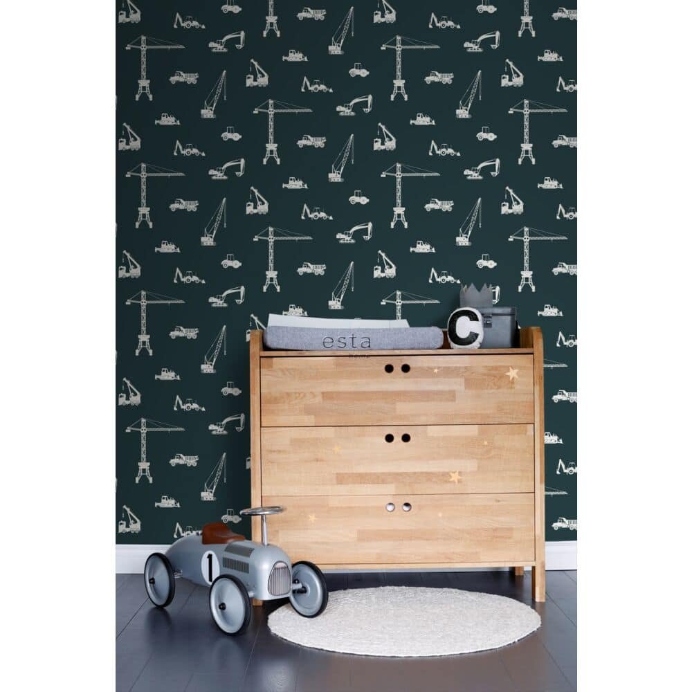 boerderijleven. Voor nieuwsgierige kleuters die houden van ontdekken, sluiten de zachte patronen mooi aan bij ons kleuterbehang. En voor kinderen met een hoofd vol fantasie en verhalen vind je in de meer dromerige ontwerpen een vleugje magie. Zelfs kleine verwijzingen naar avontuur en beweging sluiten aan bij ons assortiment rondom voertuigen.