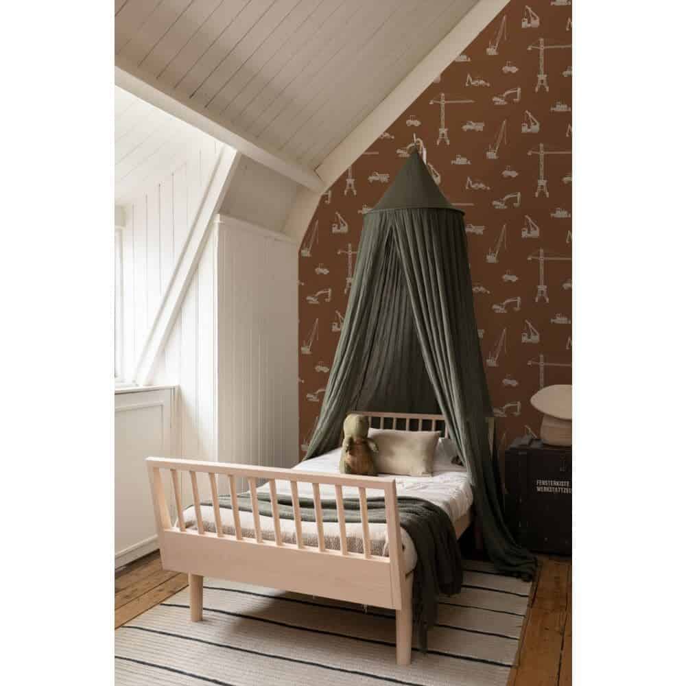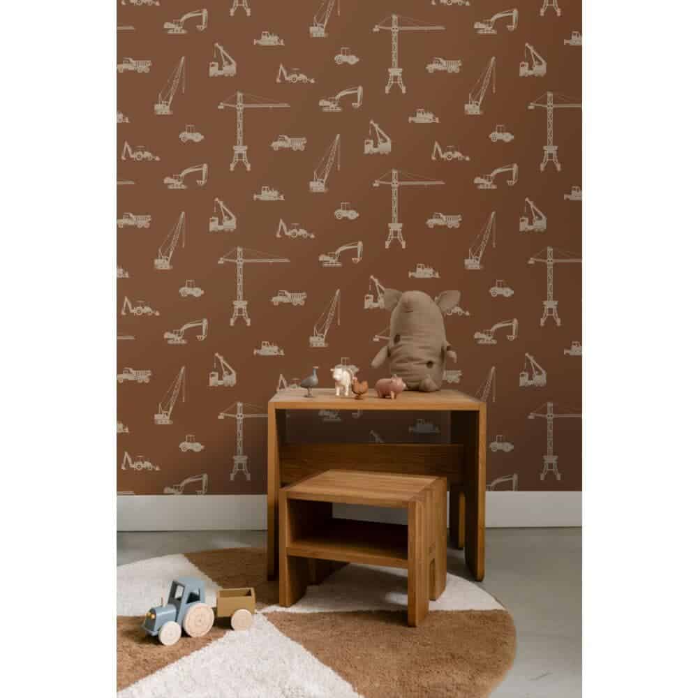 boerderijleven. Voor nieuwsgierige kleuters die houden van ontdekken, sluiten de zachte patronen mooi aan bij ons kleuterbehang. En voor kinderen met een hoofd vol fantasie en verhalen vind je in de meer dromerige ontwerpen een vleugje magie. Zelfs kleine verwijzingen naar avontuur en beweging sluiten aan bij ons assortiment rondom voertuigen.