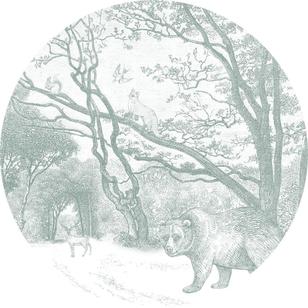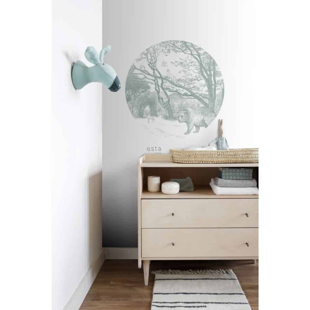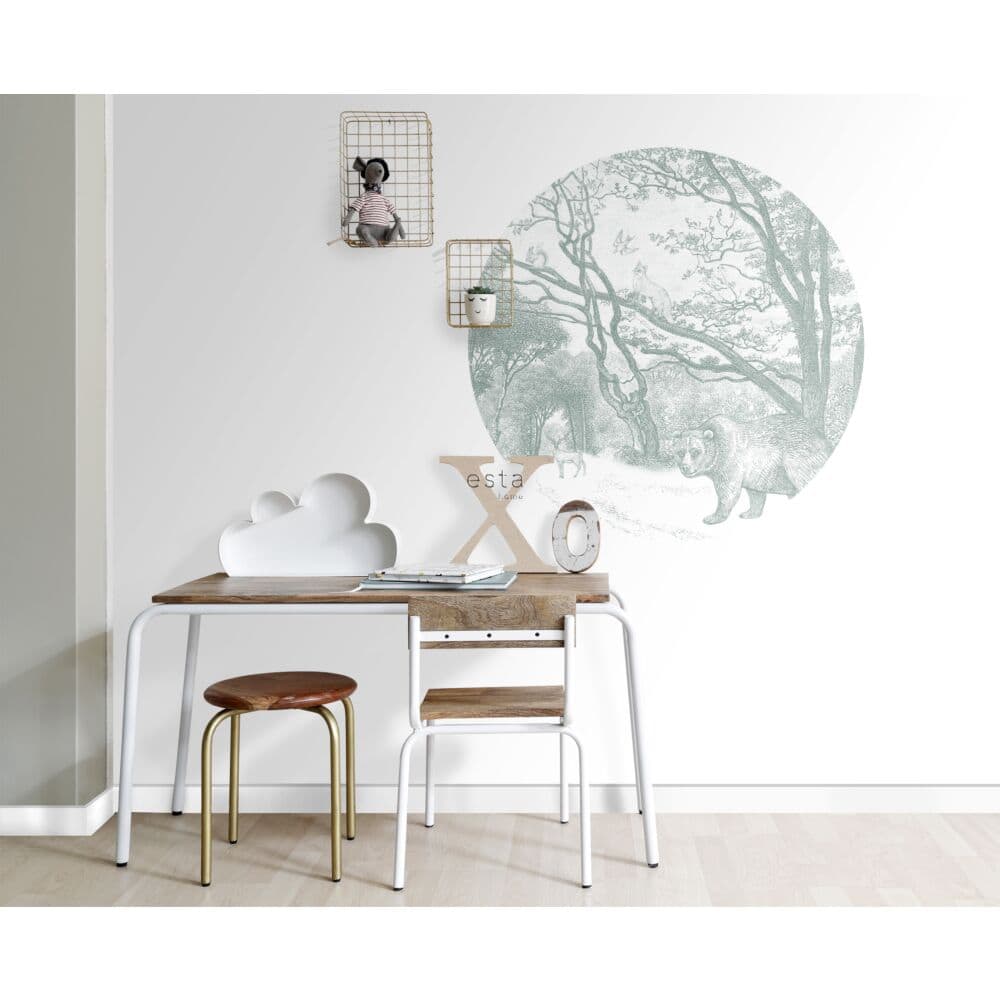 Esta Home Behangcirkel Ø70 cm – Bos met Bosdieren – Groen – 159071