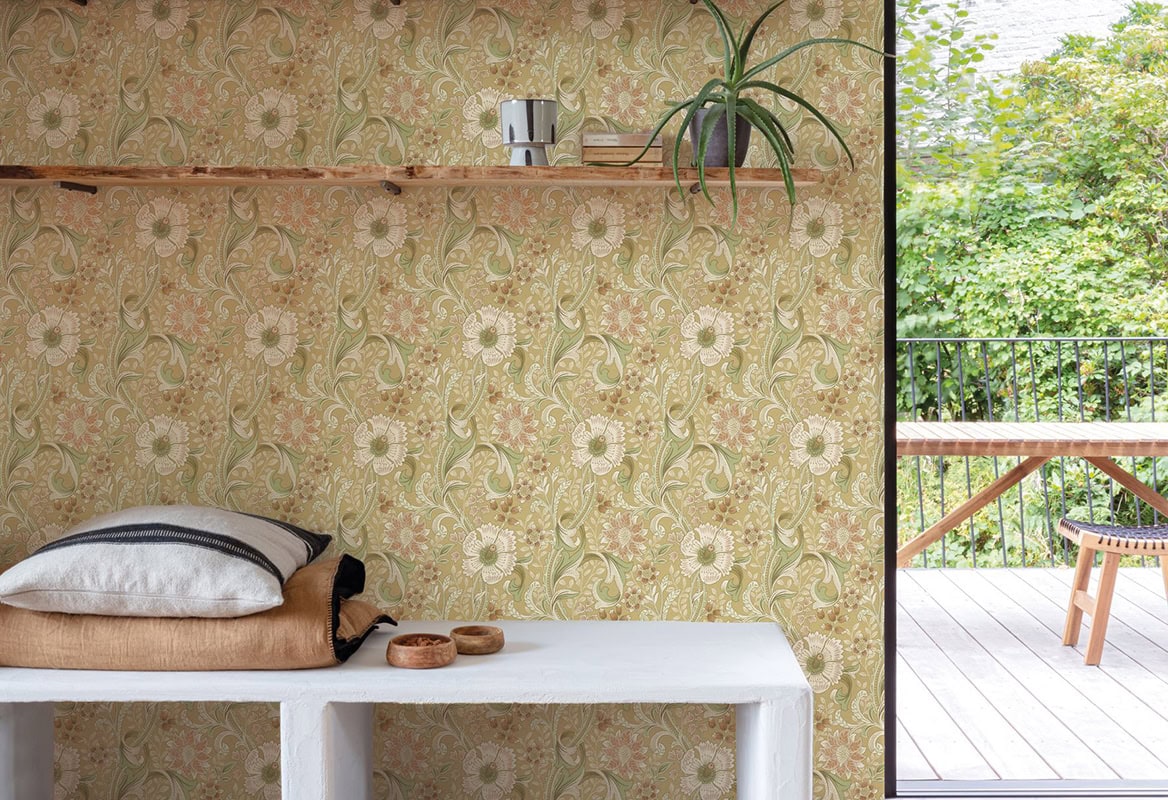 De Freya Collectie van het merk HookedOnWalls Behang kenmerkt zich door haar aardse tinten in natuurlijke en fleurige designs.